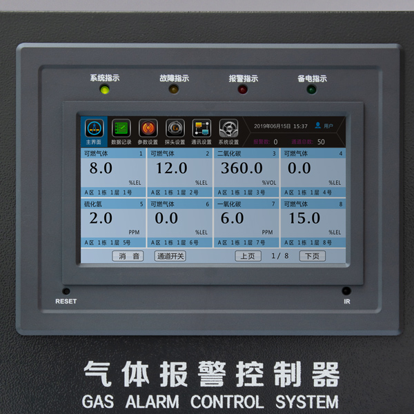 氣體報警控制器連接氣體探測器可持續(xù)監(jiān)測環(huán)境中的有毒有害氣體,根據(jù)接收到的輸入信號顯示被測氣體的濃度,并可通過Rs485數(shù)字信號與上位機通訊。控制器可設(shè)定二級報警值,當監(jiān)測到被測氣體濃度超標時根據(jù)不同的報警級別發(fā)出聲光信號示警。數(shù)據(jù)記錄、報警記錄、系統(tǒng)日志以及報警通道均可通過菜單查詢,并可通過繼電器輸出來控制外部設(shè)備,如排風系統(tǒng)或其它外部設(shè)備。